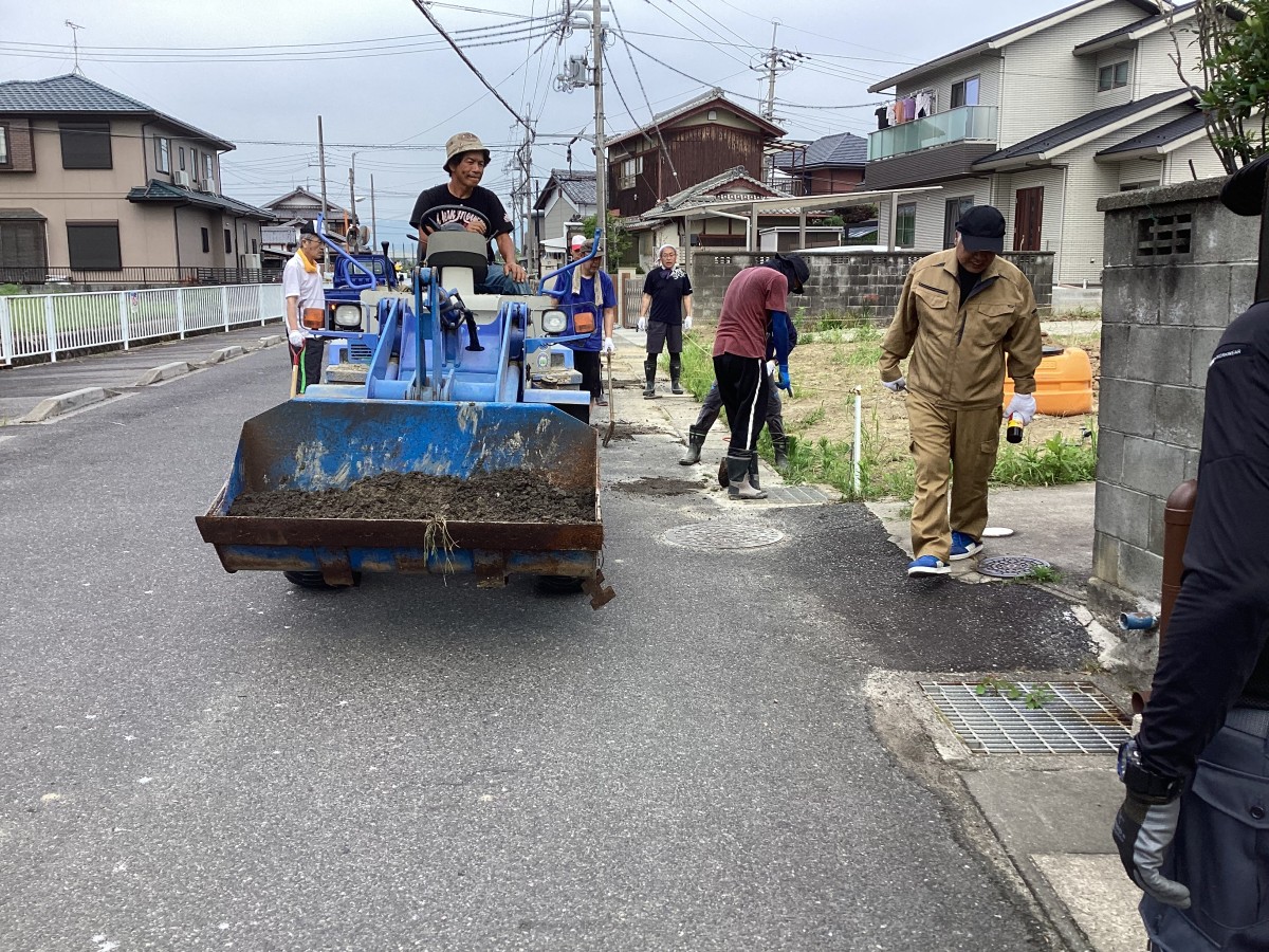 7月6日熱中症が心配されるほどの猛暑の中で、「北山田町未来環境を世代につなぐ会」の事業の一環でもあります「町内の一斉清掃」を大勢の町民の参加を得て実施いたしました。作業は、町内を8区域に分け、各区域の側溝や水路、児童公園および田畑の水路の泥上げと除草などを行っていただきました。幸い、参加者は、熱中症にかかることもなく、無事作業を終えることができました。