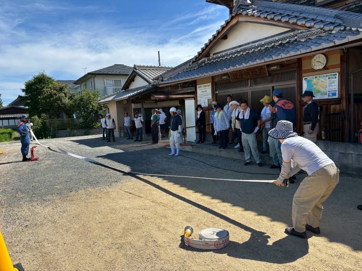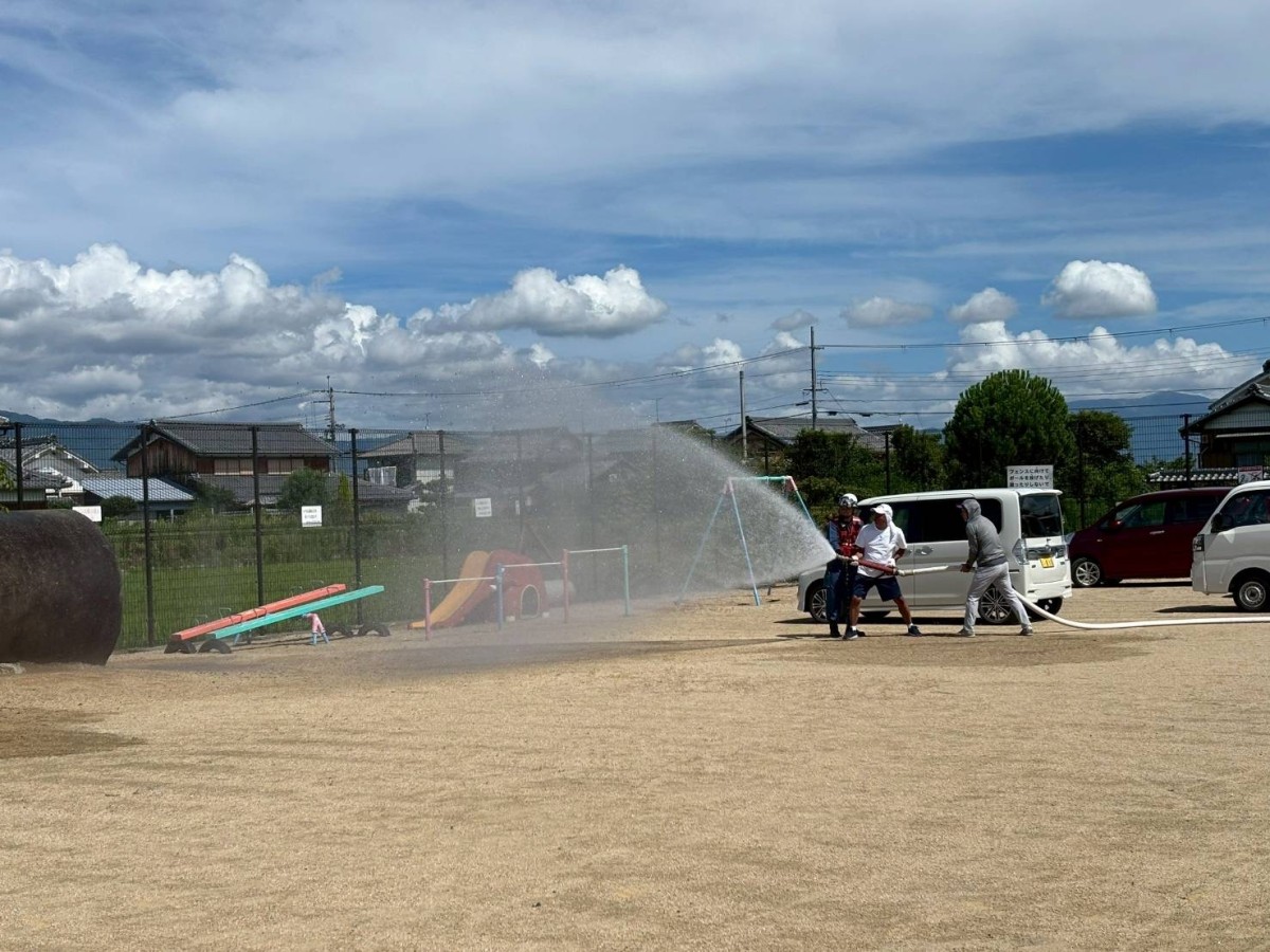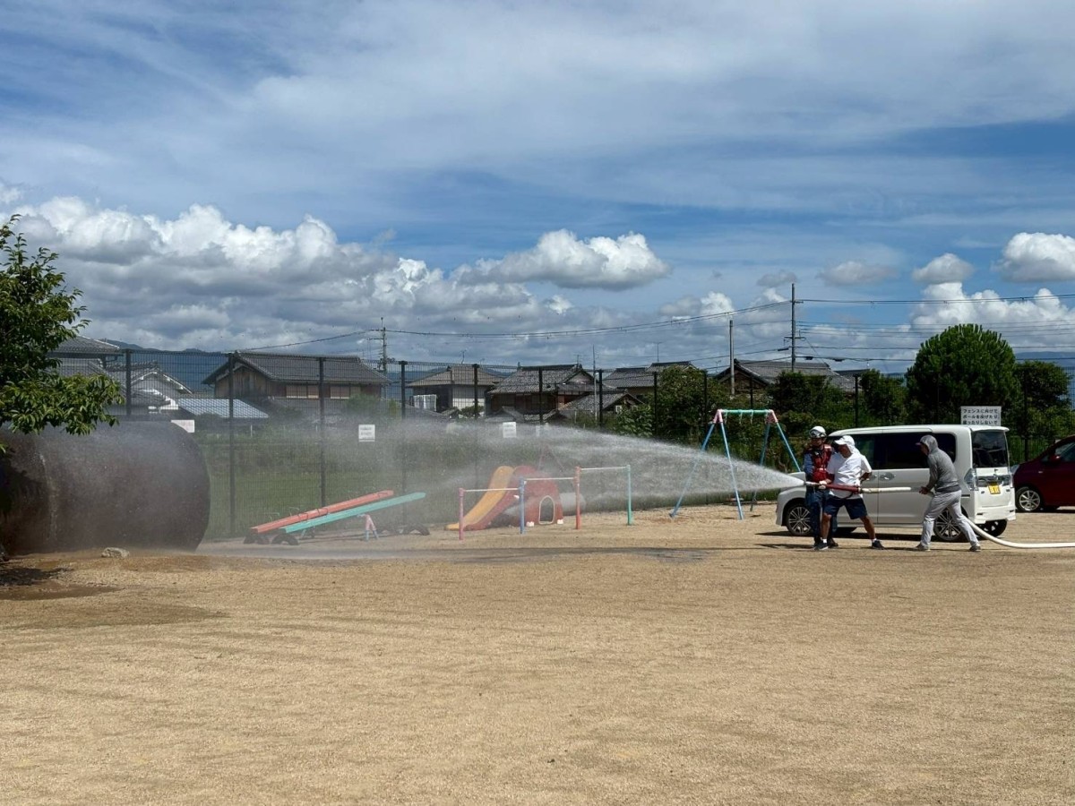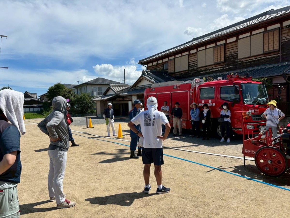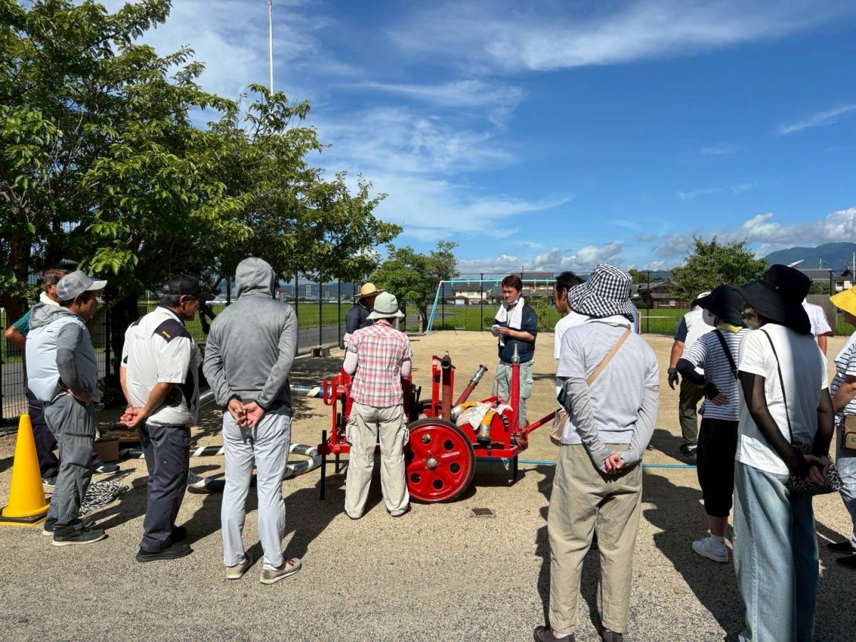 不動浜町自主防災放水訓練 不動浜自主防災組織隊の放水訓練を西消防署の指導のもとで、7月27日(日)に不動浜会館前の公園で実施しました。 隊員のほぼ全員が参加して有意義な訓練になりました。安心-安全な町内会を目標に隊員全員の意識が高いです。