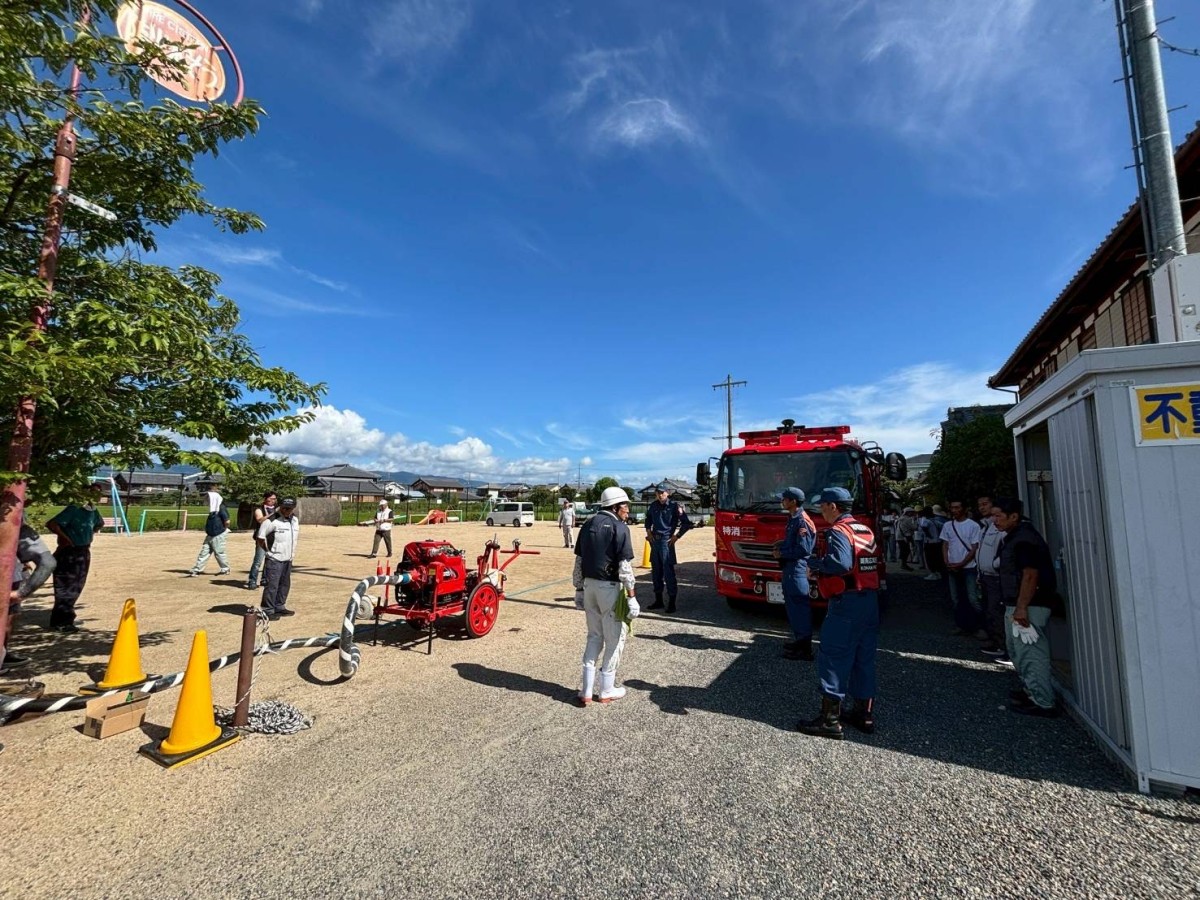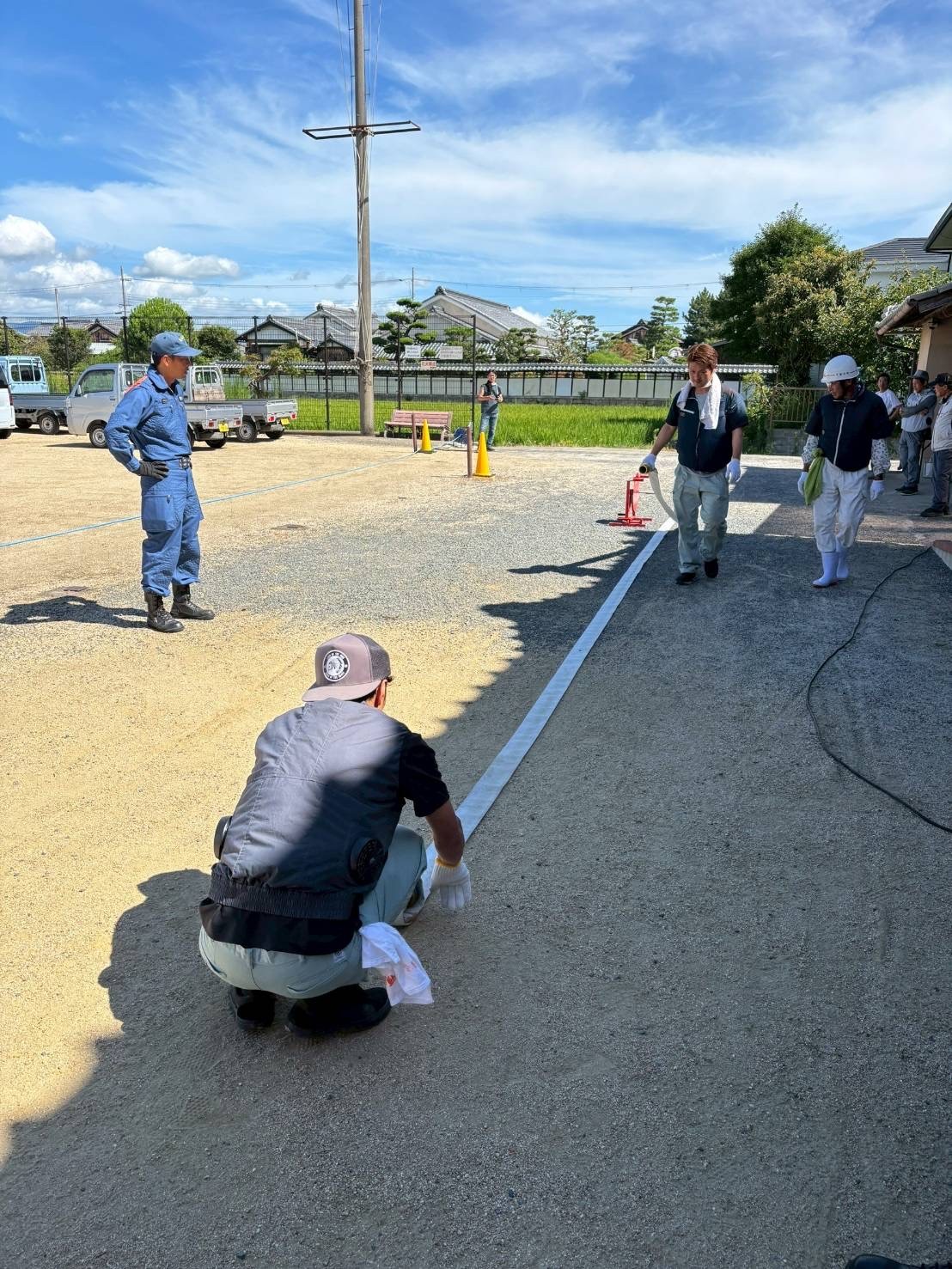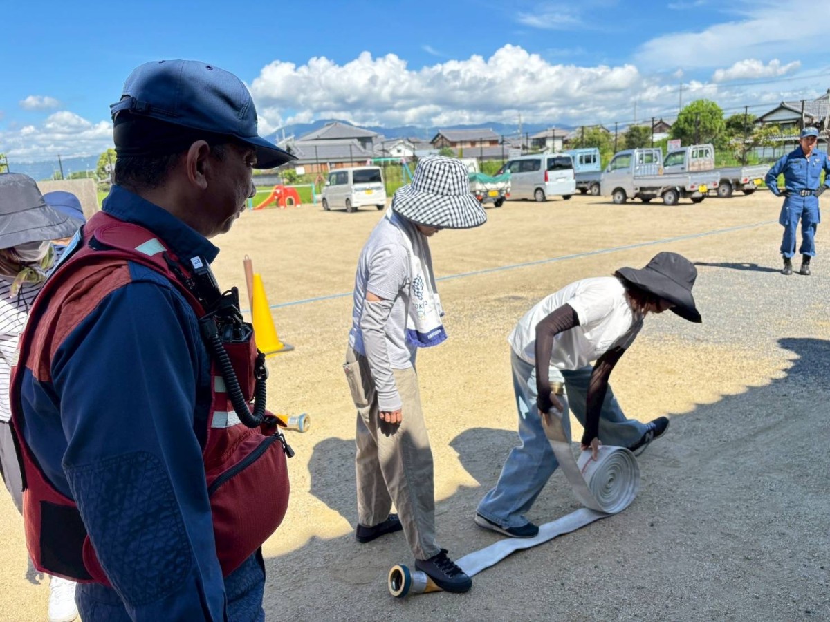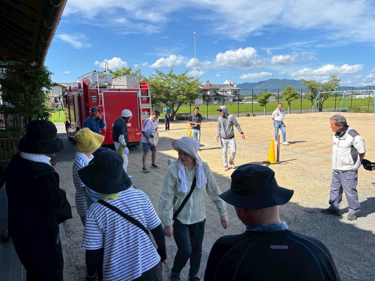 不動浜町自主防災放水訓練 不動浜自主防災組織隊の放水訓練を西消防署の指導のもとで、7月27日(日)に不動浜会館前の公園で実施しました。 隊員のほぼ全員が参加して有意義な訓練になりました。安心-安全な町内会を目標に隊員全員の意識が高いです。