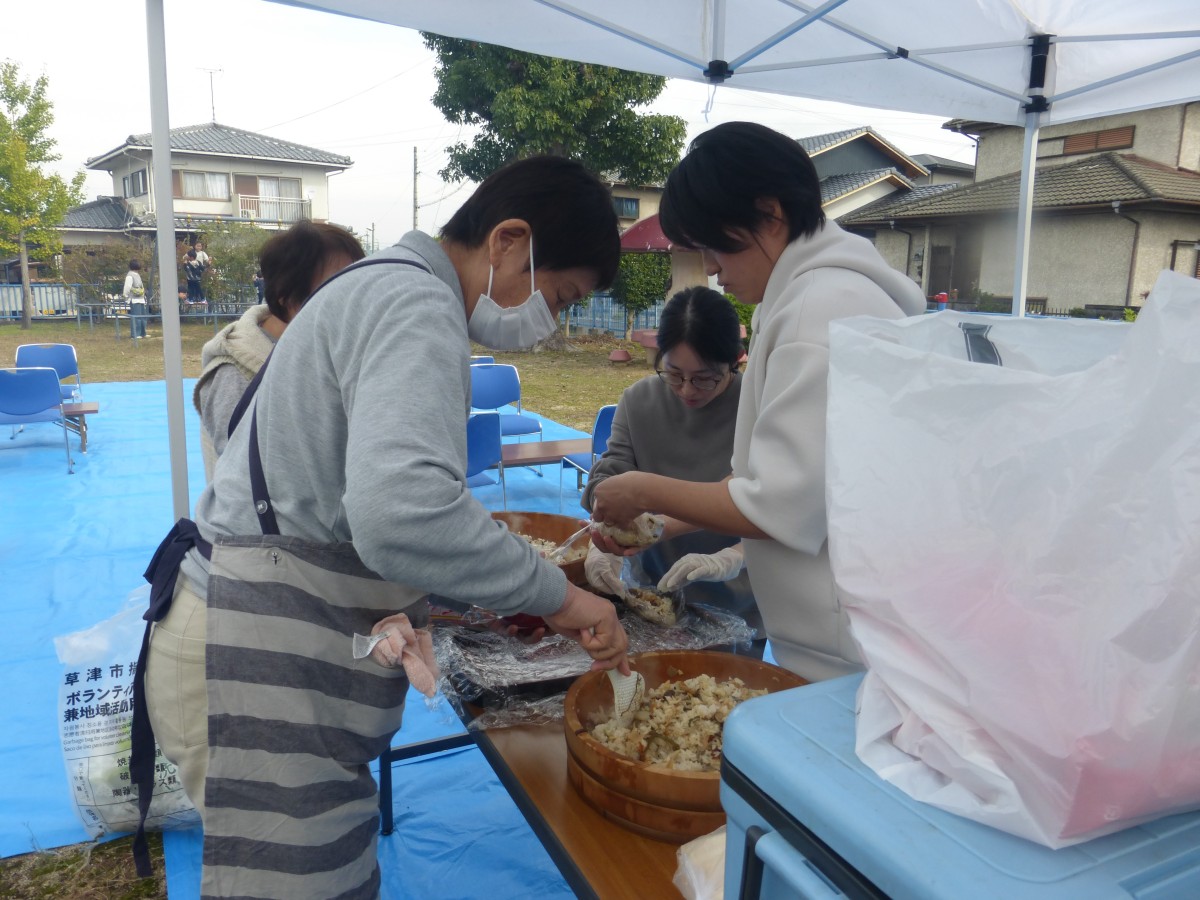 ↑炊き上がったら、女性陣が精魂込めて握ってくださいました!!