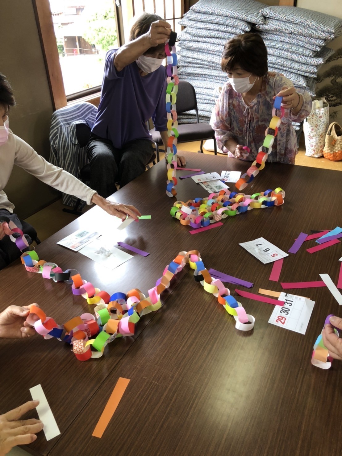 10月29日に行われる20周年記念行事に向けて、あおばなの家オリジナル替え歌の練習やお部屋の飾り付け用のわっかをみんなで作成しました。全員が元気に集合して、楽しい記念行事になるよう願っています。