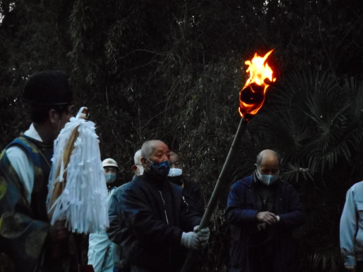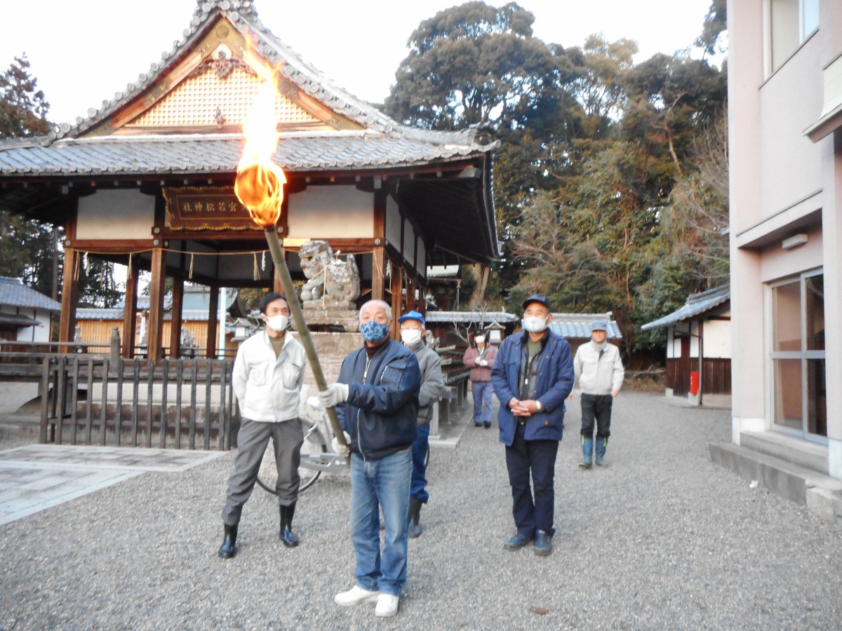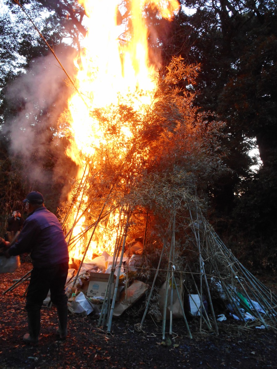 1月14日の夕刻 大宮若松神社において正月飾りやお札などを燃やします。