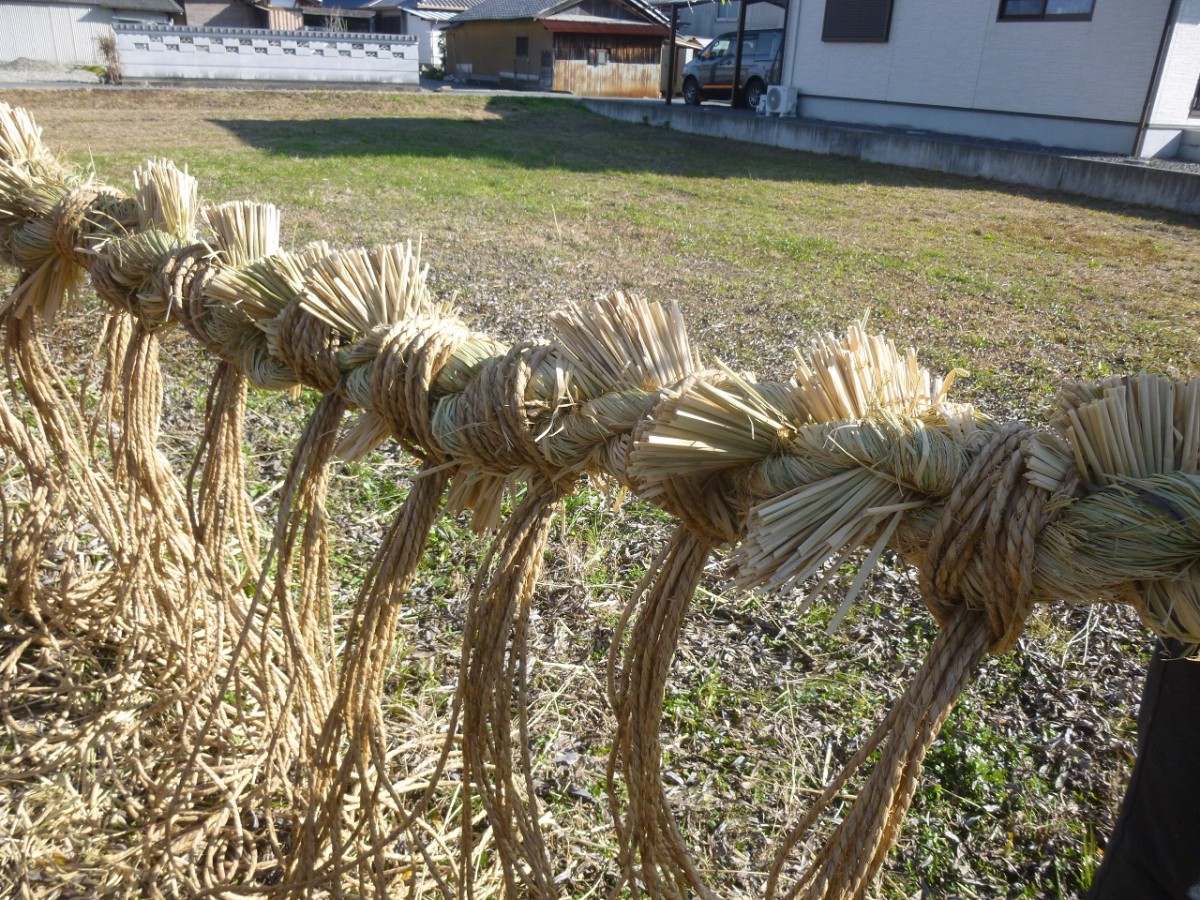 この縄に柳の小枝(20cm程度)12本を編み込み一本の足にします。うるう年はこの足が13本になります。