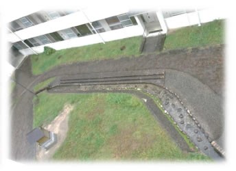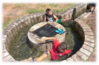 夏休み中の子ども達の楽しみの団地内にあるせせらぎです。